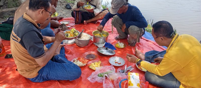 Kebersamaan makin lengkap dengan makan siang bersama. Ikan mujair dan bandeng hasil pancingan langsung diolah menjadi sayur kuning. Kuahnya segar, gurih, dan jadi rebutan para peserta.