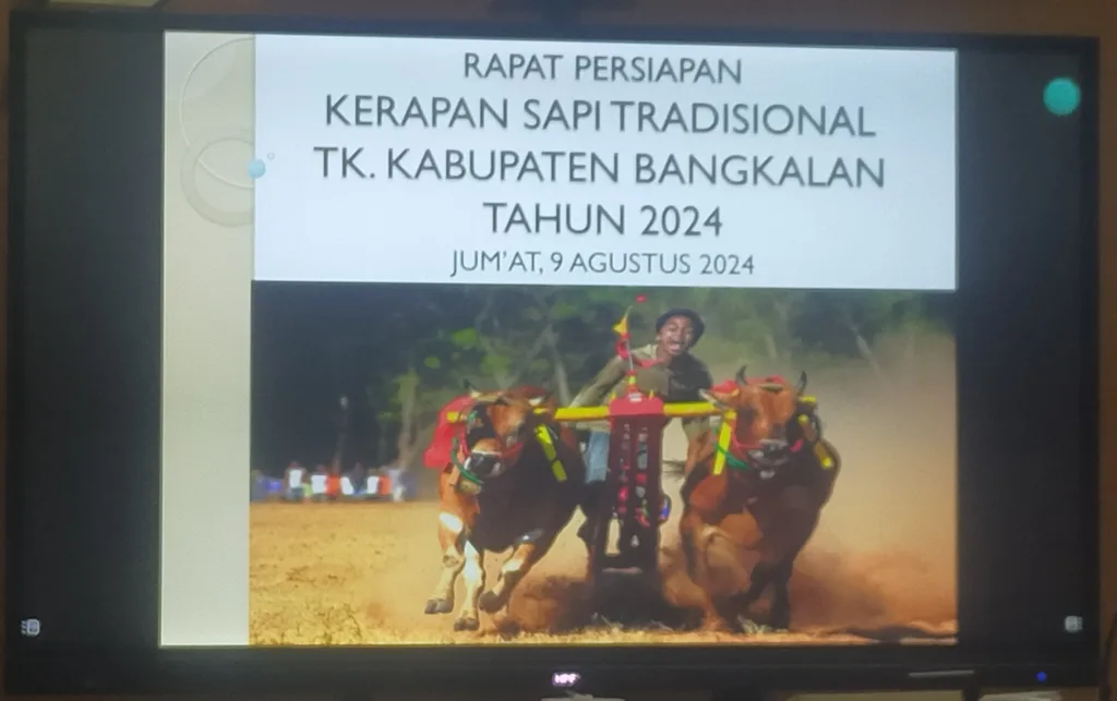 Hal tersebut diutarakan Aba Tohir, saat Rapat Persiapan Kerapan Sapi tingkat Kabupaten di Aula Diponegoro Pemerintah Kabupaten Bangkalan di Jalan Soekarno Hatta No. 35 Bangkalan. Jumat (9/8/2024) siang.